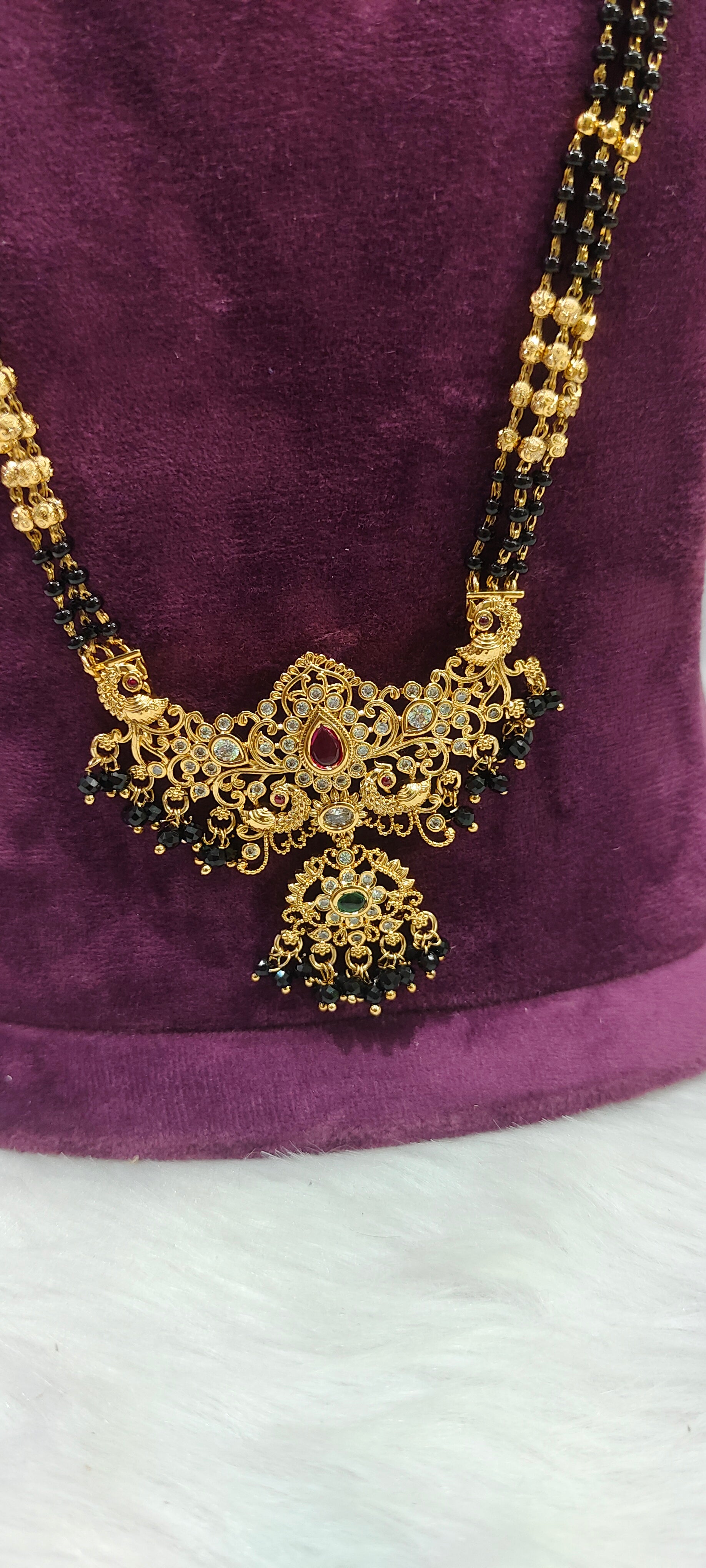 Premium nakshi 3 line 28" length non god motive black beads