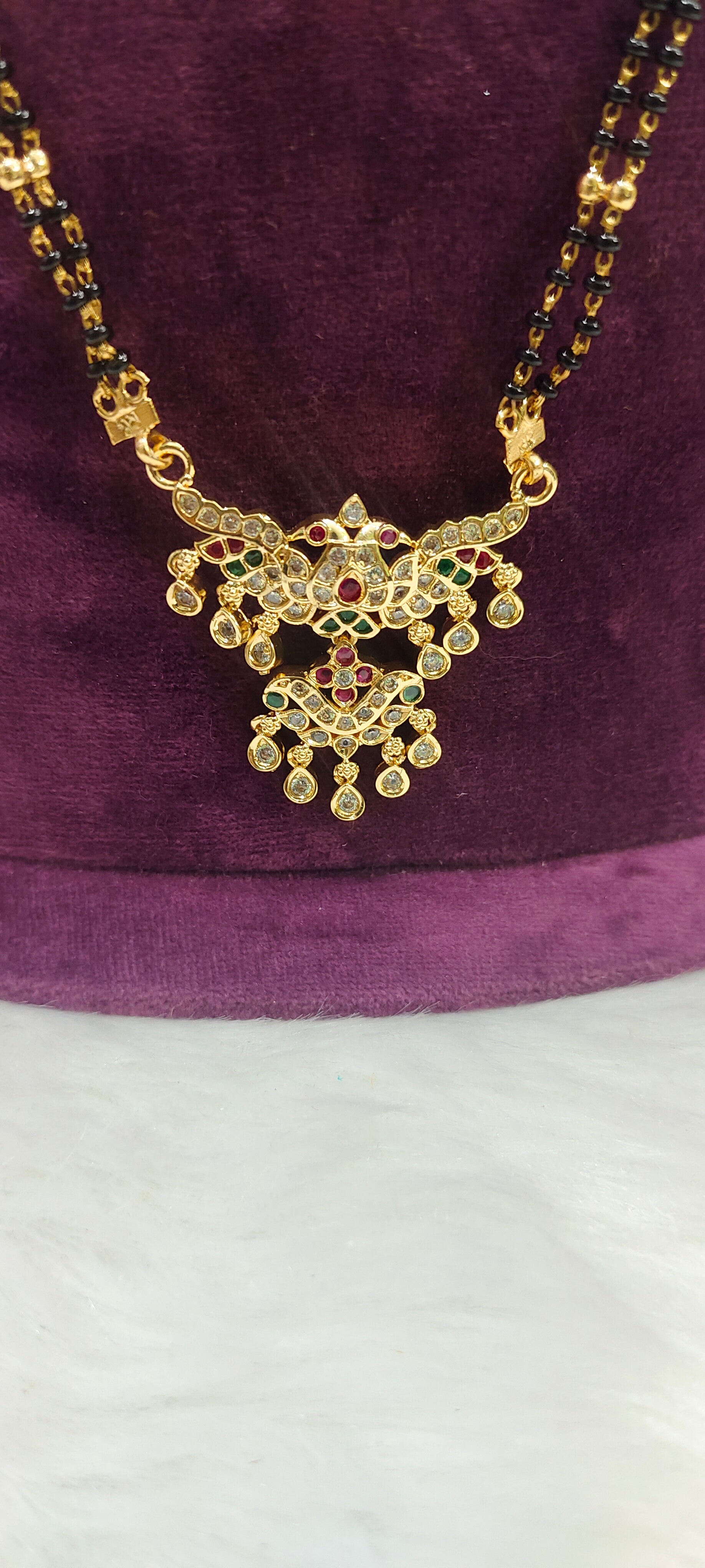 Premium nakshi 3 step necklace with 28" length black beads combo
