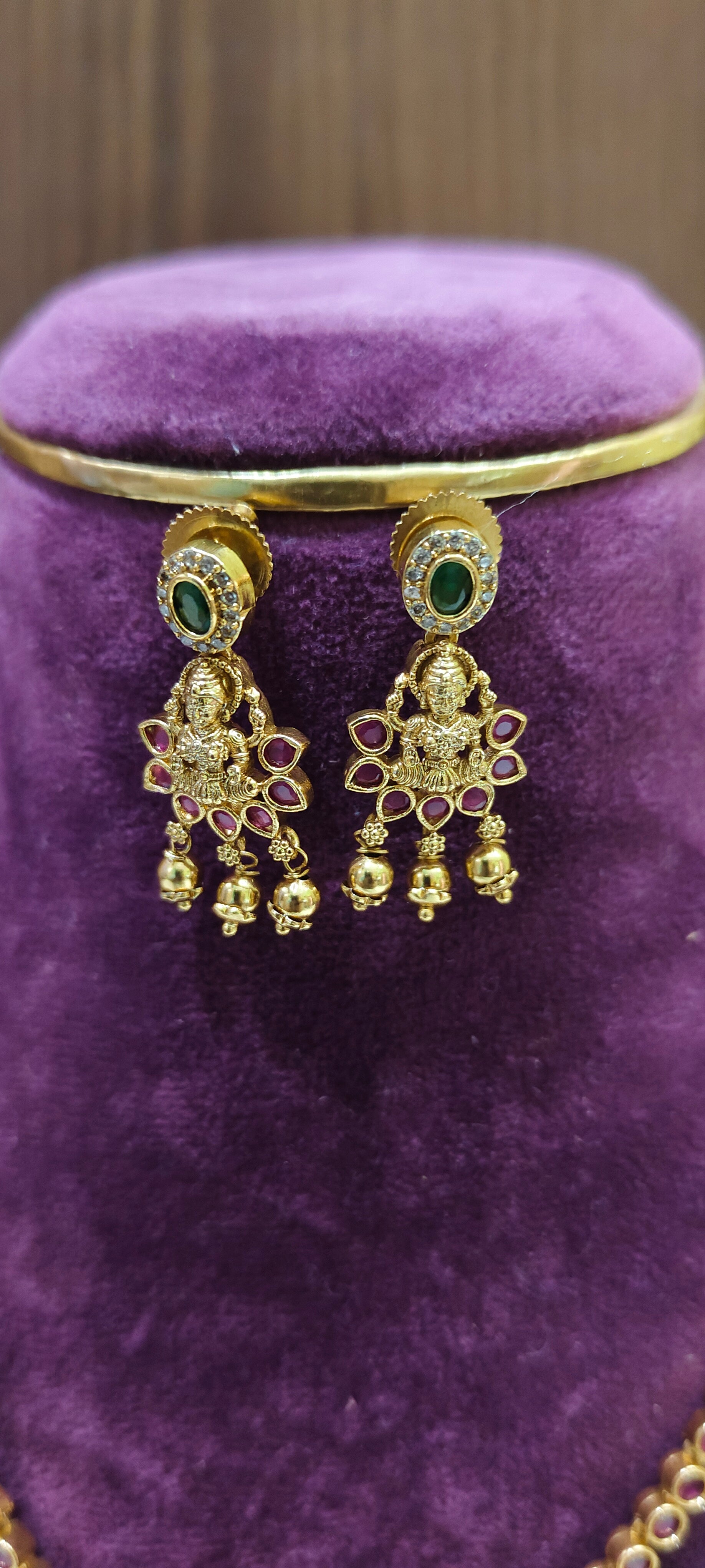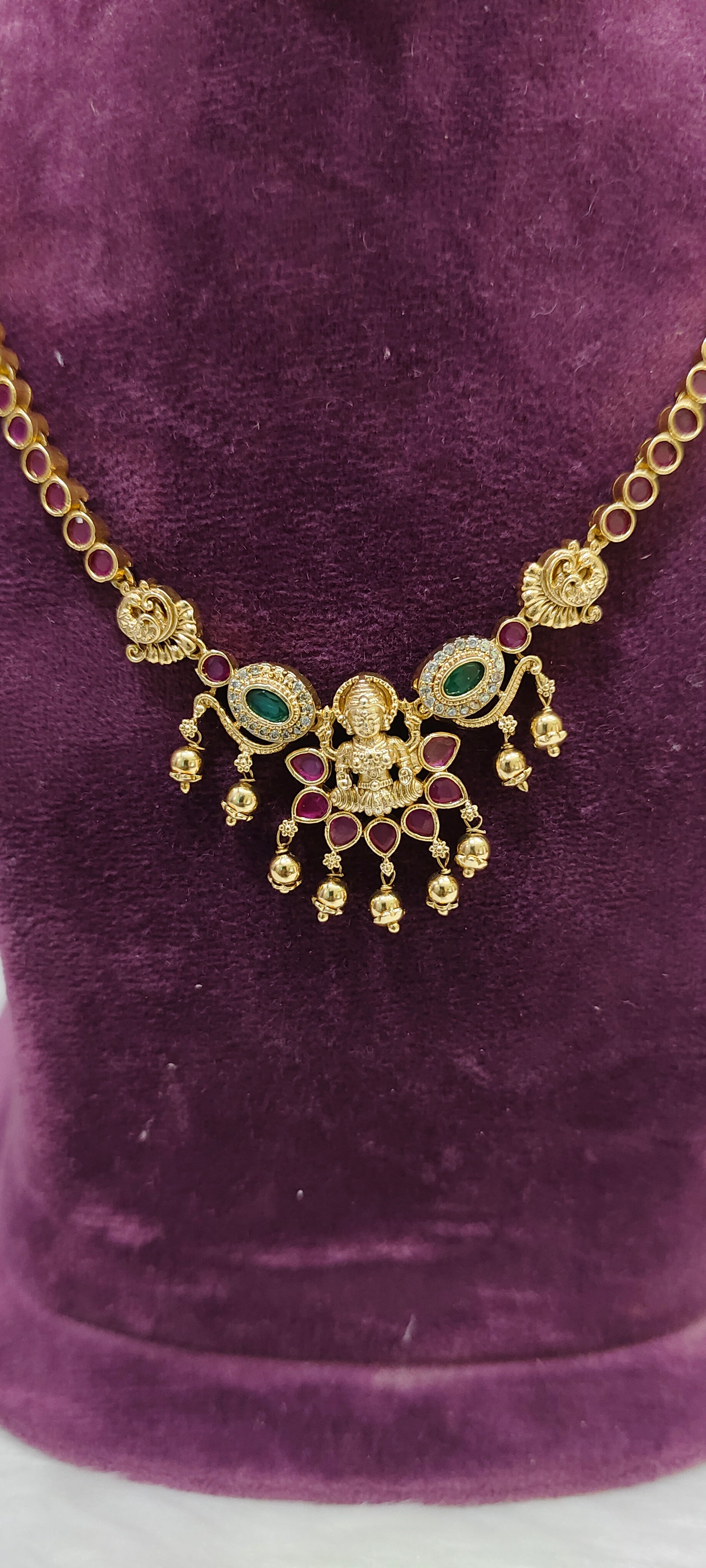 Premium nakshi simple gold look ruby necklace set